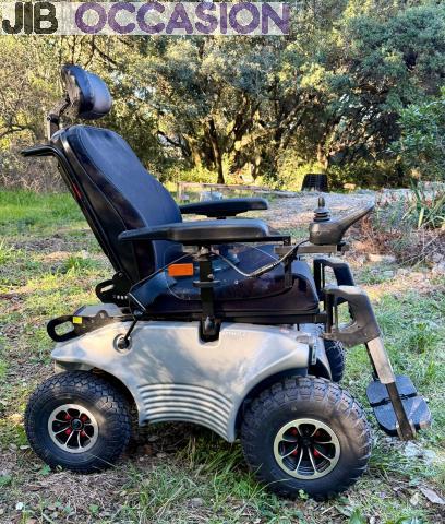 Siège avec largeur d'assise de 43à 56 cm. Pneus larges à crampons, permettant le franchissement de bordures et trottoirs. Suspension. Repose- pieds amovibles, ceinture de sécurité abdominale. Eclairage LED à l'avant et à l'arrière.