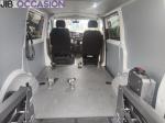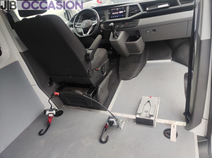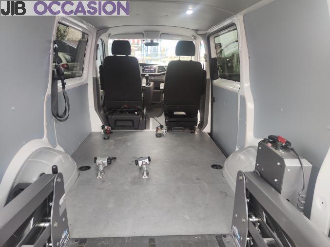 Le véhicule est aménagé pour le transport d'une personnes à mobilité réduite dans son fauteuil roulant.